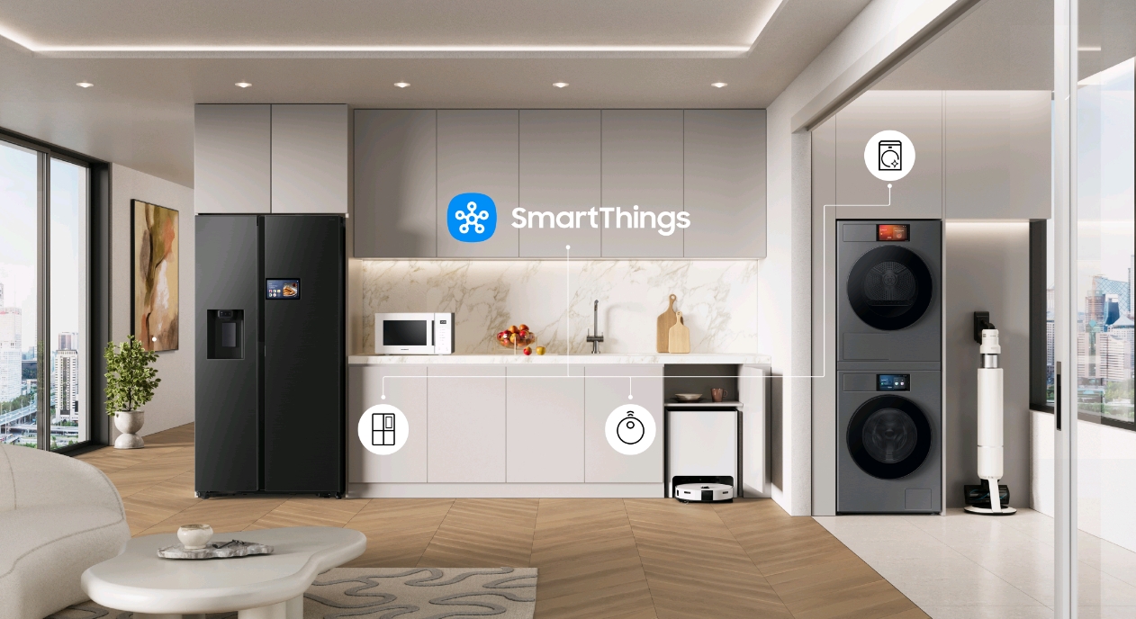 В съответствие с увеличаването на броя на уредите, които разполагат с дигитален екран, като хладилниците и пералните машини Bespoke, Samsung въведе и функция за споделяне на екрана, за да подобри възможностите за диагностика. За различните екрани с размери 7“, 9“ и Family Hub потребителите им могат да споделят екраните на устройствата си в реално време с консултантите от сервизния център, което дава възможност за диагностициране на проблеми, свързани с дисплея, неизправности в приложенията или проблеми с възпроизвеждането на мултимедия. Въведено за пръв път през 2021 г. при хладилниците Family Hub, споделянето на екрана сега се разширява до хладилниците с 9-инчов екран през юли 2025 г., а през септември ще последва поддръжка за перални машини със 7-инчов екран[4].