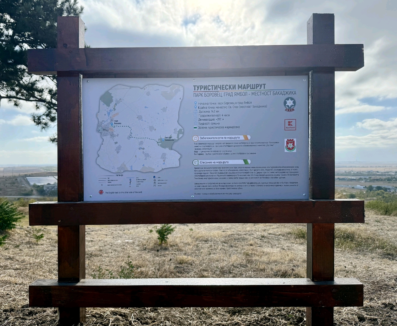 В Ямбол, само на няколко километра от самия град, туристите вече могат да се радват на обновен и живописен маршрут. В рамките на съвместната инициатива на Kaufland България и Българския туристически съюз (БТС) „Не губи посоката“ беше подновен маршрут край град Ямбол до местността Бакаджиците. Той започва от хълма Боровец над града, където се извисява пилон с българския трибагреник, преминава през манастира „Свети Спас“ и достига до живописните склонове на Бакаджишките възвишения. Общата дължина на маршрута е над 18 км.