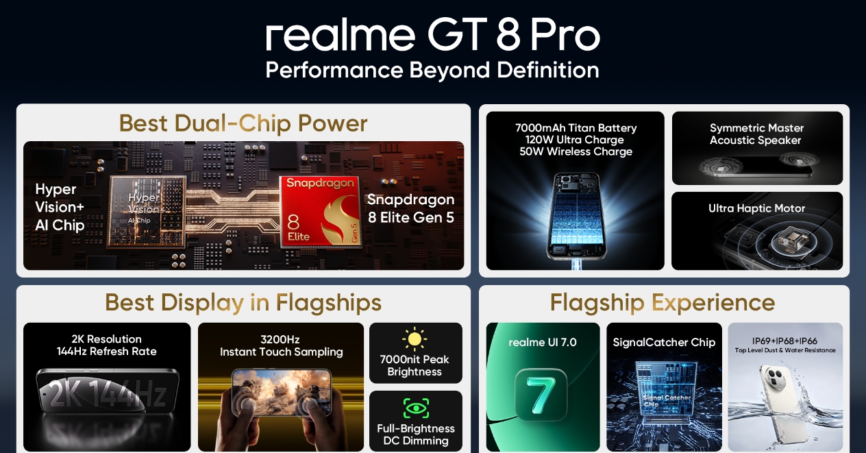 Това представяне отбелязва второ поредно поколение от серията realme GT, което въвежда най-напредналите флагмански чипсети на Qualcomm на българския пазар. След миналогодишния дебют на Snapdragon 8 Elite с realme GT 7 Pro, GT 8 Pro отново потвърждава ангажимента на realme да бъде лидер в технологичните иновации и да предоставя производителност от ново поколение на потребителите по целия свят.