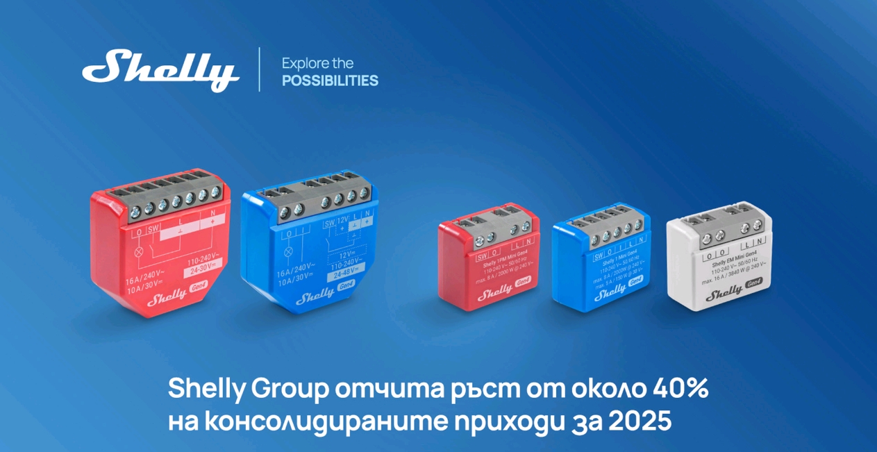 Shelly Group обяви предварителни консолидирани резултати за финансовата 2025 година, според които приходите от продажби на устройства и свързани услуги са нараснали с приблизително 40% на годишна база, достигайки 149.7 млн. евро (292.8 млн. лева).