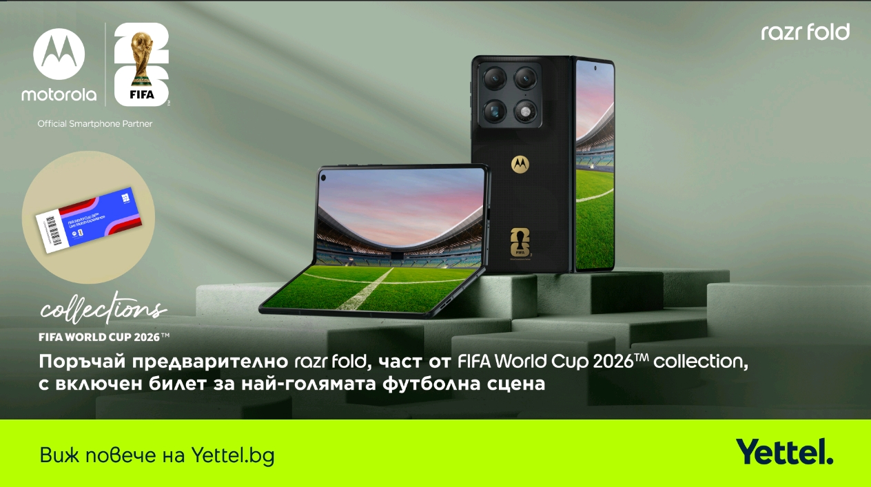 - България лимитираният модел Motorola razr fold, част от FIFA World Cup 26™ Collection, ще се продава само в онлайн каналите на Yettel между 6 април и 31 май 2026 г.